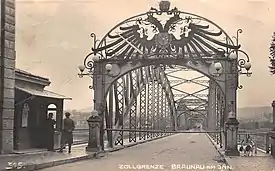 The town is on the lower river Inn below its confluence with the Salzach, where it forms the border with the German state of Bavaria, halfway on the road between the state capital Linz and the Bavarian capital Munich, about 60 km (37 mi) north of Salzburg. Braunau is connected by bridges over the Inn with its Bavarian counterpart Simbach am Inn. A traditional port of entry, all border controls have been abolished since the implementation of the Schengen Agreement by Austria in 1997.