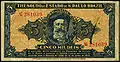 5 thousand réis banknote issued by the Treasury of the State of São Paulo due to monetary shortage during the 1932 Constitutionalist Revolution.