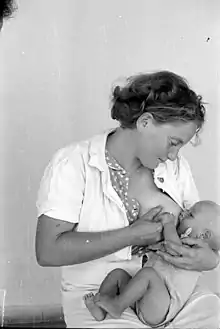 Breastfeeding and mental health is the relationship between postpartum breastfeeding and the mother's and child's mental health. Research indicates breastfeeding has positive effects on the mother's and child's mental health.[1] These benefits include improved mood and stress levels in the mother, lower risk of postpartum depression, enhanced social emotional development in the child, stronger mother-child bonding and more. Given the benefits of breastfeeding, the World Health Organization (WHO), the European Commission for Public Health (ECPH) and the American Academy of Pediatrics (AAP) suggest exclusive breastfeeding for the first six months of life.[1] Despite these suggestions, estimates indicate 70% of mothers breastfeed their child after birth and 13.5% of infants in the United States are exclusively breastfed.[2] Breastfeeding promotion and support for mothers who are experiencing difficulties or early cessation in breastfeeding is considered a health priority.[1]