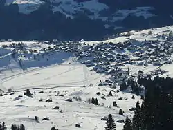 While the area was settled in the late Roman era or Early Middle Ages, Breil/Brigels is first mentioned in 765 as in Bregelo when the Bishop of Chur granted a farm in Breil/Brigels to Disentis Abbey. Shortly thereafter, the Abbey established a church and fortification on St. Eusebius' hill near the village. The village church of S. Maria and the chapel of S. Sievi (Chaplutta Son Sievi) both came under control of the Abbey in 1185 at the order of the Pope.[3] New immigrants, known as the Freie von Laax, moved into the village during the middle ages which weakened the power of the Abbey. In the early 14th Century, the pro-Habsburg Abbot Hugo III of Werdenberg marched into the valley to reestablish his authority, but was forced out in 1327. Following a fire which destroyed much of the Abbey in 1387, the Abbot Johannes of Ilanz sold his alpine pastures in Breil/Brigels to pay for the reconstruction. In 1491, the village of church of S. Maria was raised to a parish church. Then, in 1496 the Abbey church and fort on St. Eusebius' hill both burned to the ground and were not rebuilt. During the plague of 1550 the village had 316 deaths. Six years later the plague struck again, killing 180 and in 1631 a third plague killed 130. In 1738, the village became free of the obligation to provide tithes to the church.[4]