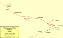The Bridge of Weir Railway was an independent railway company that built a line from Johnstone to Bridge of Weir. It was taken over by the Glasgow and South Western Railway (G&SWR) in 1865 and formed the base of a line that extended to Greenock, giving the G&SWR access to the harbour facilities there, competing with the rival Caledonian Railway.