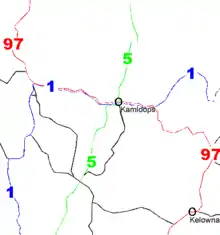 | Kamloops No. 1 | 206.09 | 128.06 | Shuswap Road | Signalized, at-grade intersection | |||