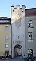 Soon thereafter, further rows of houses were built outside the eastern gate. These led to the small Church of Our Lady (today's Church of the Assumption of Mary). The first church inside the town walls (at first only a small chapel) was built beneath the castle by the Brunecker burgher Niklas von Stuck. This church is today the Rainkirche. In 1358, Heinrich von Stuck, brother of Niklas, brother, funded the hospital/almshouse that was built in the following years. Soon the town received the right to hold a weekly market and impose high justice. A castle leader occupied the fortress as the bishop's representative.
