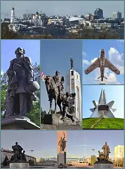 The ancient city of Bryansk, whose name is associated with wilds, overgrown ravines, rugged forests and swamps, was founded no later than 985.[15] The location of the settlement was originally associated with navigable river routes and was located in the area of the Chashin Kurgan, where the fortress walls were erected. For reasons that have not yet been clarified, the city changed its location and by the middle of the 12th century had already finally established itself on the steep slopes of the right bank of the Desna on Pokrovskaya Hill (Russian: Покровская гора). The foundations of the future urban development of the city were laid even earlier, when around the city-fortress in the 17th century after the Time of Troubles on the coastal strip at the foot of the Bryansk fortress the posadskaya "Zatinnaya Sloboda" was upset, and on the upper plateau, between Verkhniy Sudok and White Kolodez , - "Streletskaya Sloboda". Somewhat earlier behind the posad (the territory between the fortress and the Peter-Pavlovsky monastery), after the annexation of Bryansk to the Moscow state and the organization of the Yamskaya service in 1503, the Yamskaya Sloboda appeared. Zatinnaya Sloboda is located on the site of the ancient "Zhitny Gorod" - a fortified territory of food warehouses and salt storages. Later, the settlement gave way to a cannon yard, on the site of which the Arsenal was located in the 18th century.[16]