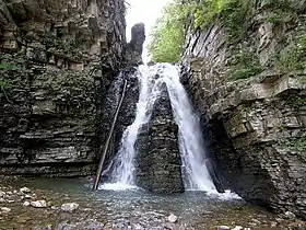 the Bukhtivets waterfall (Ukrainian: Бухтівецький водоспад) is located on the Bukhtivets River, near the village of Bukove, Nadvirna Raion, Ivano-Frankivsk Oblast.