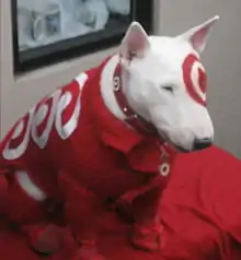 Bullseye is a Bull Terrier and the official mascot of Target Corporation. The dog is featured in Target's commercial campaigns and in store sale signage and is used in various marketing campaigns.