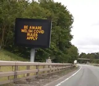 By 27 March, North Wales Police were patrolling the border between Wales and England because visitors were ignoring the stay-at-home instructions and travelling into Wales. In many cases the police were stopping cars entering from England; such border control had not happened between Wales and England since the 16th century.[21][22][23]