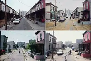 Vergara has been compared to Jacob Riis[1][2] for his photographic documentation of American slums and decaying urban environments. Beginning in the 1980s, Vergara applied the technique of rephotography to a series of American cities, photographing the same buildings and neighborhoods from the exact vantage point at regular intervals over many years to capture changes over time. Trained as a sociologist with a specialty in urbanism, Vergara turned to his systematic documentation at a moment of urban decay, and he chose locales where that stress seemed highest: the housing projects of Chicago; the South Bronx of New York City; Camden, New Jersey; and Detroit, Michigan, among others.