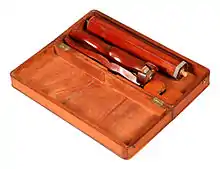 Some items of campaign furniture are instantly recognizable as made to dismantle or fold. Brass caps to the tops of legs, hinges in unusual places, protruding bolts or X-frame legs all give clues to the functionality of the piece. However, some pieces were designed to be up to date and fashionable. In such cases, as much of it looked like domestic furniture, it is harder to see how it dismantles. Ross and Co. of Dublin were innovators of campaign furniture design and much of their work is obviously Victorian in period. It only becomes apparent that their balloon back chairs dismantle when they are turned upside down and two locking bolts can be seen.[1]