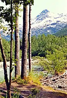 This is the smallest of the campgrounds on the American side of the trail. It is located next to a sandbar in the Taiya River and consists of a canvas warming and cooking shelter, a small number of campsites, and a bear pole. Pleasant Camp usually serves as a spillover campsite if Sheep Camp is full. There is a sign near the cooking shelter notifying backpackers whether Sheep Camp is at capacity or can still take backpackers.