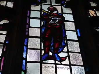 The stained glass windows that line the nave contain mostly secular figures whose scholarly and artistic endeavors have contributed to society and culture.
