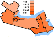 Some of this changed in 2004, the year that happened to coincide with Sheila Copps' departure from federal politics. In Hamilton proper, the New Democratic Party managed to pick up one seat from the Liberals in 2004 and picked up two more in 2006 to sweep urban Hamilton. The Conservatives picked up two seats from the Liberals in 2004 and four more in 2006, leaving the Liberals with only Welland in 2006.