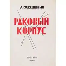 Cancer Ward (Russian: Ра́ковый ко́рпус, tr. Rakovyy korpus) is a semi-autobiographical novel by Nobel Prize-winning Russian author Aleksandr Solzhenitsyn.[1] Completed in 1966, the novel was distributed in Russia that year in samizdat, and banned there the following year.[2][3] In 1968, several European publishers published it in Russian, and in April 1968 excerpts in English appeared in the Times Literary Supplement in the UK without Solzhenitsyn's permission.[4][5] An unauthorized English translation was published that year, first by The Bodley Head in the UK, then by Dial Press in the US.[3]