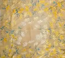 In 1883, Wheeler formed her own textile firm, involving by women only, under the name Associated Artists.[3][7] [4] The firm produced a wide range of textile goods including tapestries and curtains.[8] Associated Artists was particularly well-known for its "changeable" silks. Woven out of two threads, these fabrics changed color depending on the light.[2]