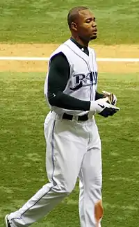 Carl Demonte Crawford (born August 5, 1981), nicknamed "The Perfect Storm",[1][2] is an American former professional baseball left fielder. He batted and threw left-handed.