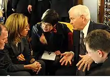 Since PSOE's Extraordinary Congress, celebrated on July 2014, Chacón handled the Socialist party's international relations.[2] When Rubalcaba later announced his resignation after his party's dismal showing in the 2014 European elections, Chacón was widely seen as one of the frontrunners for his replacement, but did not run.[11] She left politics in 2016 to practice law.[2] She was also a member of the European Council on Foreign Relations.[12]