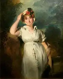![]() Portrait c. 1820 by James Lonsdale, "Principal Painter in Ordinary to the Queen". Her wedding ring is displayed prominently to emphasise fidelity to marriage vows. | |||||