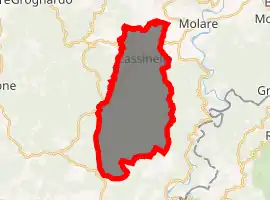 Cassinelle is a comune (municipality) in the Province of Alessandria in the Italian region Piedmont, about 90 kilometres (56 mi) southeast of Turin and about 35 kilometres (22 mi) south of Alessandria. As of 31 December 2004, it had a population of 883 and an area of 23.8 square kilometres (9.2 sq mi).[3]