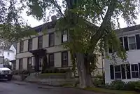 Castine has a number of historic sites and parks (including the ruins of British earthworks at Fort George), a deep water harbor (with tie-ups for small boats beyond the current of the Penobscot and Bagaduce rivers), a non-exclusive club offering golf, tennis and yachting facilities, restaurants, and four churches (Episcopal, Roman Catholic, Congregational and Unitarian Universalist). In addition, the town has a public library, an historical society, and the Wilson Museum, an institution featuring exhibits of anthropological, natural and local artifacts. Castine's streets are lined with Federal, Greek Revival, Cape Cod and other antique style houses, and shaded by large elms which are replaced with disease-resistant strains when they succumb. The Castine Post Office is in one of the oldest Post Office buildings in continuous operation in the United States. The Federal government began leasing the building (built in 1817) in 1833 and later purchased the building. In 1869 the building was renovated to accommodate the Castine Post Office.[25][8]