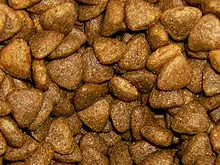 Cat food is food for consumption by cats. Cats have specific requirements for their dietary nutrients.[1] Certain nutrients, including many vitamins and amino acids, are degraded by the temperatures, pressures and chemical treatments used during manufacture, and hence must be added after manufacture to avoid nutritional deficiency.[2][3]