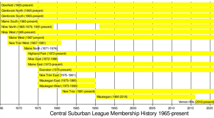 - 1965 – CSL is formed by Deerfield, Glenbrook North, Glenbrook South, Maine South, Niles North, and Niles West.