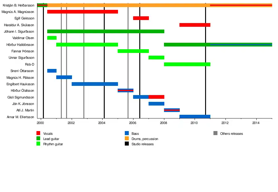 - Hörður Halldórsson – guitar (2000–2005, 2008–present)