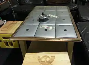 The space itself consists of four rooms: A large lounge/hackcenter, a kitchen, a media room, and a workshop.[7][11] Chaosdorf owns different kinds of equipment to help members fulfilling their projects and offering services.[12]