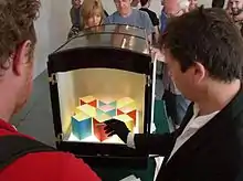 The participant is informed that at least two of the coloured cards are a matching pair, and is asked to select the matching pair. The player's perception may be influenced by factors such as the lighting inside the cabinet and by reflected hues from the closely situated primary coloured cards. Once the player has decided, the chosen cards are sealed within an envelope.[6]