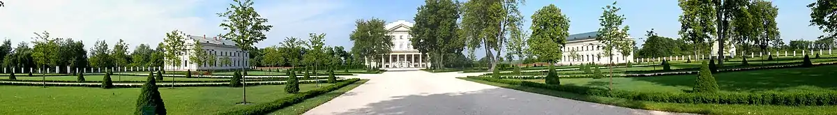 Pavlovsk, the largest landscape park in 18th century Russia (1,500 acres),[28] is attributed to a succession of architects, starting with Cameron and ending with Carlo Rossi.[28] Cameron built the original palace core that survives to date, the Temple of Friendship, Private Gardens, Aviary, Apollo Colonnade and the Lime Avenue and planned the original landscape, but true authorship of Pavlovsk as a whole should be credited to empress Maria Feodorovna.[28][29]
