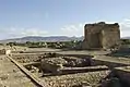 On the summit of the Temple Mount / Djebel Chimtou is a Numidian shrine, which is attributed to the Numidian King Micipsa. His father Massinissa, who had been an Allied Roman since the Second Punic War, had seized power over the upper Medjerda valley in 152 BC. After his death, his son and successor, Micipsa, founded a ten-meter monumental monument on the highest point of the mountain in the late 2nd century BC. The marble was used as a building material, which at the same time meant the discovery of the "marmor numidicum". The ground plan of the sanctuary is a rectangle of about twelve to five and a half meters in length and width. It was erected on the planted rocky base, the crevices and bumps of which had been closed with strings. The building consisted of solid marble squares, connected with dowels, and had no interior. Only a few blocks of the foundations have been preserved in situ.[1]