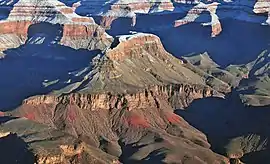 Cheops Pyramid is a 5,401-foot-elevation (1,646 meter) summit located in the Grand Canyon, in Coconino County of Arizona, USA.[3] This butte is situated four miles north of Grand Canyon Village, 2.5 miles south-southwest of Buddha Temple, and 1.7 mile south-southeast of Isis Temple, which is the nearest higher neighbor. Topographic relief is significant as it rises 3,000 feet (914 meters) above the Colorado River in 1.5 mile. It was named by George Wharton James for the fanciful resemblance to the famous pyramid constructed by Egyptian Pharaoh Cheops.[4] This was in keeping with Clarence Dutton's tradition of naming geographical features in the Grand Canyon after mythological deities.[5] This butte's name was officially adopted in 1906 by the U.S. Board on Geographic Names.[3] According to the Köppen climate classification system, Cheops Pyramid is located in a Cold semi-arid climate zone.[6]