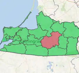 Chernyakhovsky District (Russian: Черняховский райо́н) is an administrative district (raion), one of the fifteen in Kaliningrad Oblast, Russia.[1] As a municipal division, it is incorporated as Chernyakhovsky Municipal District.[5] It is located in the center of the oblast. The area of the district is 1,285.75 square kilometers (496.43 sq mi). Its administrative center is the town of Chernyakhovsk.[2] Population: 51,936 (2010 Census);[3] 57,521 (2002 Census);[7] 12,806 (1989 Census).[8][9] The population of Chernyakhovsk accounts for 77.9% of the district's total population.[3]