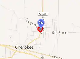 The original high school building was located where the current gymnasium stands. As the school expanded with the end of segregation in 1968 the old high school became the junior high school. That building burned on January 21, 1971.[2] The original segregated school for African Americans became Cherokee Middle School and contained grades 5 through 8. That school closed at the end of the 2006/2007 school year and is being consolidated into Cherokee Elementary and Cherokee High Schools.