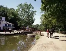 The seven National Park Service visitor centers have displays and interpretive exhibits on the history of the canal.[37] The park offers rides on two reproduction canal boats — the Georgetown and the Charles F. Mercer (named after the first president of the Canal corporation, and not the first boat on the canal named Charles F. Mercer) — during the spring, summer and autumn. The boats are pulled by mules, and park rangers in historical dress work the locks and boat while presenting a historical program.