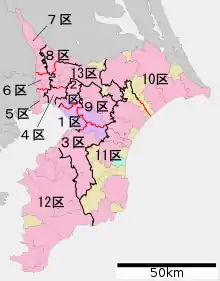 ![]() Numbered map of Chiba Prefecture single-member districts | |