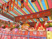 Chinese ritual mastery traditions, also referred to as ritual teachings (Chinese: 法教; pinyin: fǎjiào, sometimes rendered as "Faism"),[1][2] or Folk Taoism (民间道教; Mínjiàn Dàojiào), or also Red Taoism (mostly in east China and Taiwan), constitute a large group of Chinese orders of ritual officers who operate within the Chinese folk religion but outside the institutions of official Taoism.[3] The "masters of rites", the fashi (法師), are also known in east China as hongtou daoshi (紅頭道士), meaning "redhead" or "redhat" daoshi ("masters of the Tao"), contrasting with the wutou daoshi (烏頭道士), "blackhead" or "blackhat" priests, of Zhengyi Taoism who were historically ordained by the Celestial Master.[3]