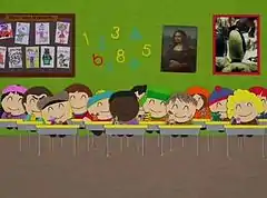 "Chinpokomon" is the eleventh-aired and the tenth-produced episode of the third season of the American animated television series South Park.[1] It originally aired on Comedy Central in the United States on November 3, 1999, making it the 42nd episode of the series. In the episode, the kids become fascinated with the latest fad: a fictional Japanese anime series called Chinpokomon and its related products, such as video games and collectible toys. Chinpokomon is a parody of the popular Pokémon media franchise. "Chinpokomon" was written by South Park co-creator Trey Parker, who also co-directed the episode together with animation director Eric Stough. The episode was nominated for an Emmy Award in 2000.[2]