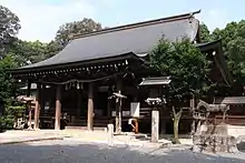 It was formerly a National Shrine of the Third (lowest) Rank (国幣小社, Kokuhei Chūsha) in the Modern system of ranked Shinto Shrines.