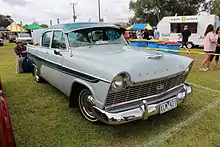 A revised Royal, the AP2 was introduced in late 1958.[5] This series featured a new grille and unusual rear styling with additional "saddle fins" grafted on to the exiting tailfins.[5] The AP2 was available as a Royal four-door sedan, a Plainsman four-door station wagon, and a Wayfarer two-door coupé utility.[2] The Plainsman station wagon was dropped from the range during the AP2 series.[2] The choice of six cylinder and V8 engines continued, with the V8 identified by a V shaped emblem in the grille and a small V8 badge on the rear quarter.
