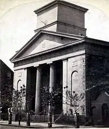 After several years in a rented hall at Grove and Christopher Streets,[4] the cornerstone of the present church was laid on June 10, 1833. The church was designed by John Doran in the Greek Revival style,[1][2][5][6] but it has been extensively renovated over the years. Two fires, one in 1855 and the other in 1885, caused extensive damage to the interior. Renovations after the second fire were supervised by Arthur Crooks.[1][2] The interior of the church was restored in 1972. At the time, a fresco of the Transfiguration, after Raphael's original in the Vatican, was discovered under layers of paint and restored. Structural restoration work was performed in 1991–1992.