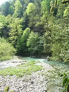 In 1864 in the valley of Khodz, near Maikop the Ubykh population resisted Russian troops.[73][74] During the battle the men were joined by the women, who disposed of their jewellery into the river and took up arms into a fight to the end and to have an honourable death.[73][74] Russians troops with heavy artillery and other modern weaponry killed all the men, women and children, in a scene that a Circassian chronicler who had witnessed the events described as "a sea of blood".[73]