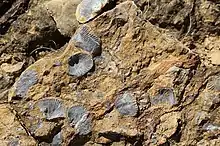Many of the fossils are found in the rocks forming Fossil Hill, comprising spectacularly exposed dipping strata spanning a period of just over one million years. Fossils have also been described from the limestone on the adjacent Dunhill Bluff and Trilobite Hill, and from the siltstones and interbedded limestones between Trilobite Hill and Coppermine Creek.[2]