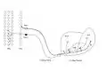 ![]() Diagrammatic longitudinal section of the cochlea. (Cochlear nerve is in center, shown as striped.) | |