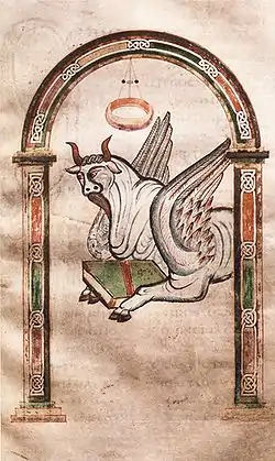The decoration of the book from the Carolingian period consists of eight frames with the representation of the four evangelists and their symbols, making the sacred text a unique work of art.[1]