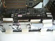 The SystemPro also offered one of the first implementations of RAID (including RAID 5) available on a PC-based system. The original RAID card, called the IDA (Intelligent Drive Array) used a proprietary form of IDE, supporting up to 4 drives internally. At its release, the largest drive available was 210 MB. Two IDA cards could be installed, allowing all 8 hard drive bays to be filled (each IDA controller array would appear as a separate logical drive to the operating system, however), providing a grand total of 1.2 GB using RAID 5, or 1.6 GB using non-redundant striping (RAID 0). Another option called the IDA Expansion Array provided support for up to 7 drives in a single array (housed in an external tower chassis looking virtually identical to the SystemPro itself), using an early (and very proprietary) form of differential SCSI. Note that all hard drives in the SystemPro or the Expansion Array were internally mounted drives; hot swapping was not an option. System for RAID performance and health monitoring patented in 1993.[1]