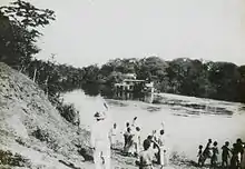 The first party of volunteers left England in April 1889 and reached Matadi in August 1889, from where they trekked upstream to Stanley Pool. The society was given enough money to buy a sidepaddle steamer named the Pioneer, which was shipped to the Congo, arriving in December 1889. The boat was then carried in sections to Stanley Pool where it was rebuilt and launched. By March 1891, first using the Henry Reed and then the Pioneer, the CBM missionaries had established stations.at Bonginda, Lulonga, Ikau and Bongandanga.[6] During the years that followed many of the missionaries died of accidents or diseases such as malaria and sleeping sickness, to be replaced by fresh volunteers. Only six of the first thirty five CBM missionaries were alive by 1900.[5]