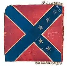Constance Cary lived with her Baltimore cousins, Hetty and Jennie; her mother served as the girls' chaperone. The three young ladies became known as the "Cary Invincibles."[9] In September 1861, they sewed the first examples of the Confederate Battle Flag following a design created by William Porcher Miles and modified by General Joseph E. Johnston. According to her own account, one flag was given to General Joseph E. Johnston, one to Confederate general P. G. T. Beauregard, and hers to Confederate general Earl Van Dorn.[10] Later during the war, she assisted her mother as a nurse at Camp Winder.[11]