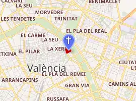 The church was founded in 1239 on land granted by King James I of Aragon.[1][2] It was replaced by a larger construction in 1250 because of concerns regarding the durability of the original building.[3] Its Gothic cloister, the oldest architectural remains of the church, was built around 1300.[4] It was renovated according to the Occitan Gothic model with a floor plan consisting of a single nave and side chapels in 1382;[5] the remnant of this church that survive is in the form of a spacious temple, the Chapel of Saint Vincent Ferrer built in neoclassical style. It was renovated and extended in the latter half of the 18th century.[6]