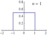 Suppose {Xi} is an iid sequence of uniform U(−1, 1) random variables. Let be their (normalized) sums. Then according to the central limit theorem, the distribution of Zn approaches the normal N(0, 1/3) distribution. This convergence is shown in the picture: as n grows larger, the shape of the probability density function gets closer and closer to the Gaussian curve.