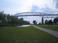 Cornwall has traditionally been a gateway from the Montreal area to the rest of Canada, and was and remains a major port of entry into Canada (Canada Border Services abandoned the Cornwall Island post May 31, 2009, but resumed service on July 13, 2009 at temporary facilities on the city's southern edge.) With the completion of the new low-level bridge connecting Cornwall to Cornwall Island, the C.B.S.A. port was moved to a permanent temporary facility on the canal lands. The city is connected to the United States at Roosevelttown near the municipalities of Massena, New York and Malone, New York, via the Three Nations Crossing (Canada, Mohawk, and United States) which traverses the St. Lawrence River.